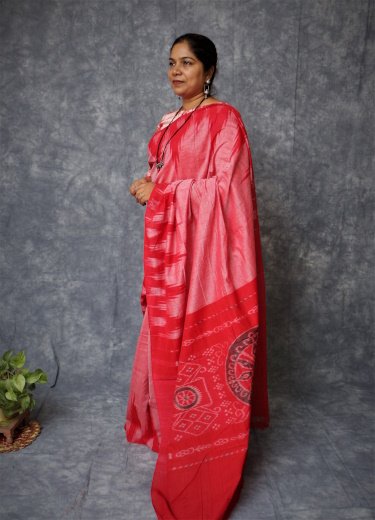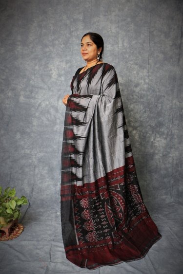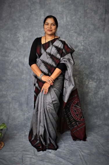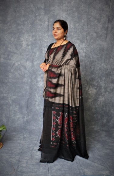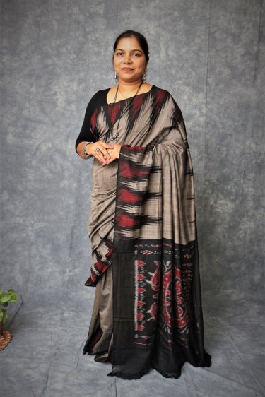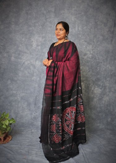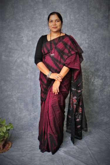 A Sambalpuri sari is a traditional handwoven bandha (ikkat) sari (locally called ``sambalpuri bandha`` sadhi or saree) wherein the warp and the weft are tie-dyed before weaving. Woven in Nuapatna region of Odisha, 'kumbha' means temples, due to the towering temples looking like peaks of Kargil mountains hence the name was put by weavers as ' Kargil Kumbha'.