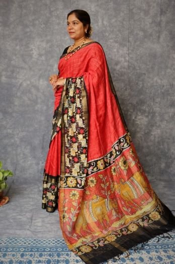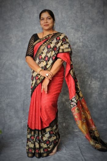 A Sambalpuri sari is a traditional handwoven bandha (ikkat) sari (locally called “sambalpuri bandha” sadhi or saree) wherein the warp and the weft are tie-dyed before weaving. Woven in Nuapatna  region of Odisha, ‘kumbha’ means temples, due to the towering temples looking like peaks of Kargil mountains hence the name was put by weavers as ‘ Kargil Kumbha’.